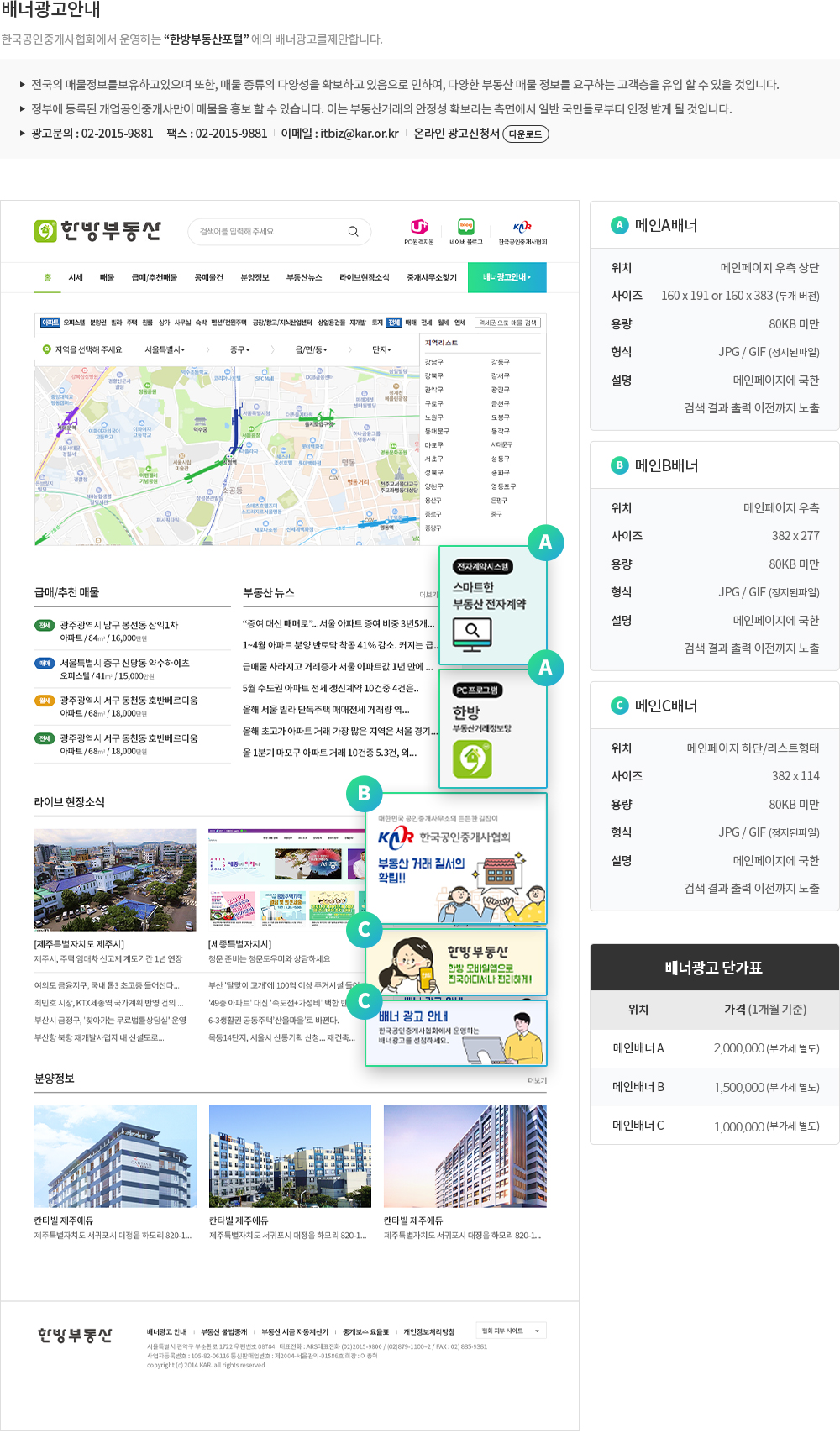 한국공인중개사 협회에서 운영하는 '한방부동산 포털'에 배너광고를 제안합니다.